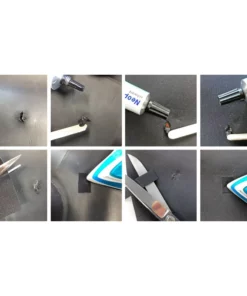 Anwendung Kleber: Die Klebeflächen müssen sauber, fettfrei und trocken sein. Reparaturstelle mit Aceton o.ä. reinigen und mit Schleifpapier leicht aufrauen. Klebstoff beidseitig & gleichmäßig auftragen. Klebstoff ca. 5 min ablüften lassen. Klebeflächen passgerecht fügen & kräftig zusammenpressen.
