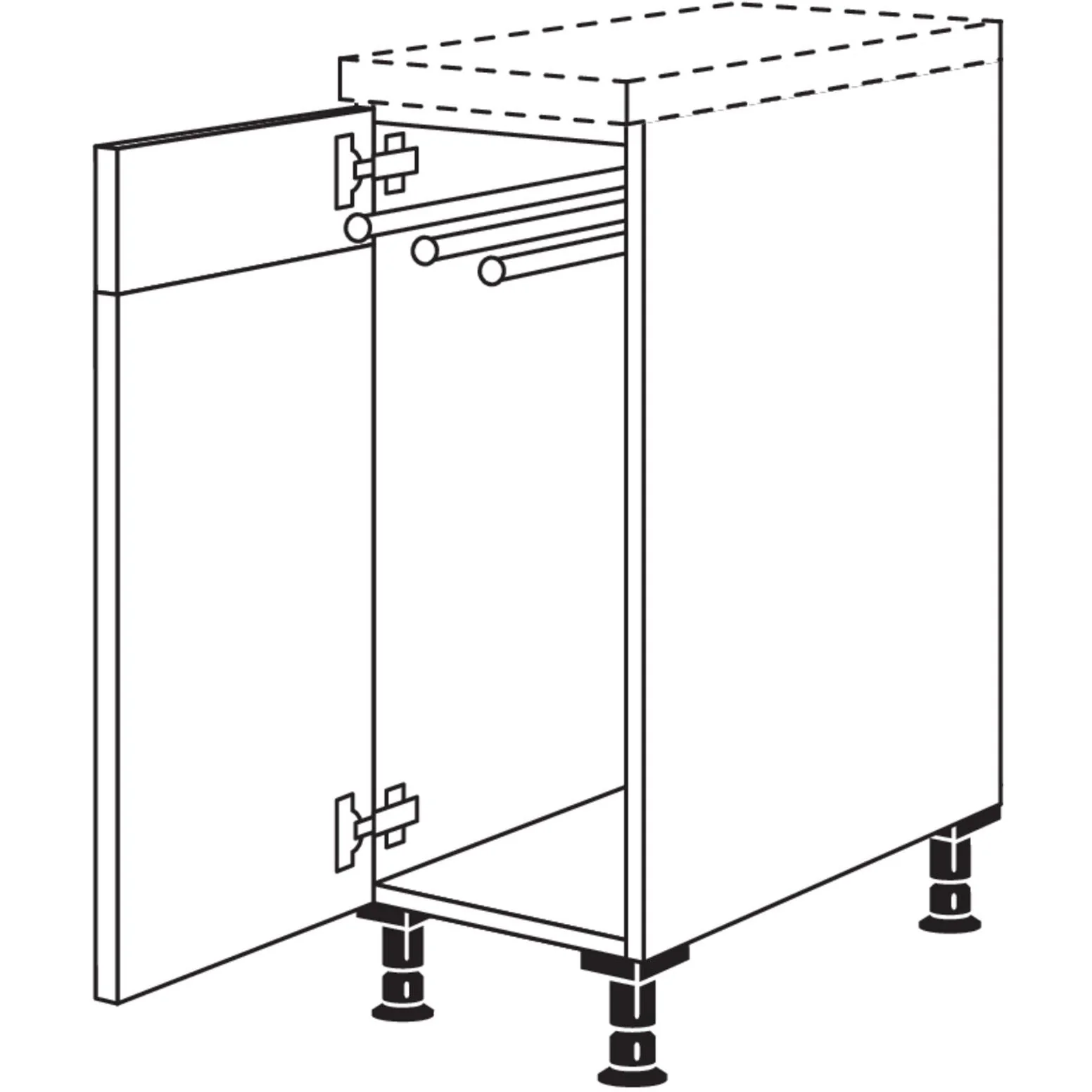 Mit seinem eleganten Design und den intelligent integrierten Funktionen, wie dem ausziehbaren Handtuchhalter, bietet dieser Unterschrank eine optimale Lösung für alle, die Wert auf Ordnung und Stil in ihrer Küche legen. Die verstiftete Tür unterstreicht die hochwertige Verarbeitung und das zeitlose Design, das sich nahtlos in jede Kücheneinrichtung einfügt.