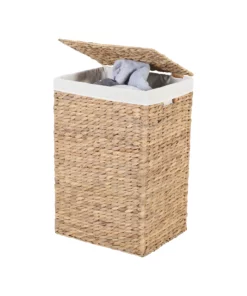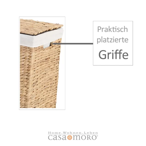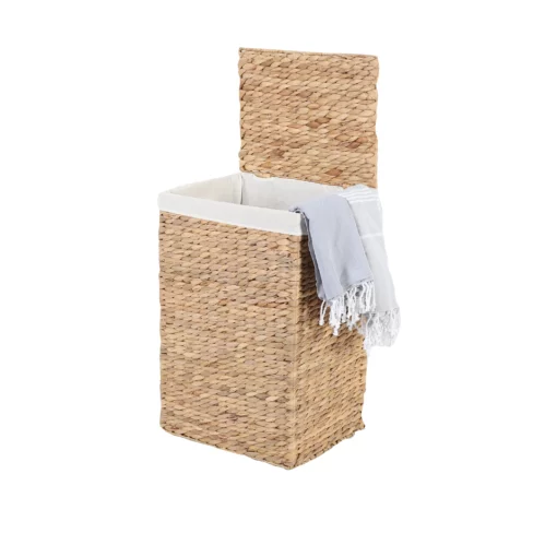 Die Wasserhyazinthe ist eine schnell wachsende Pflanze, die durch ihre Nutzung zur Herstellung von Flechtwaren wie diesem Wäschekorb nicht nur nachhaltig ist, sondern auch eine langlebige Qualität bietet. Ihre robuste Struktur sorgt für eine hohe Strapazierfähigkeit, während ihre Verarbeitung eine umweltfreundliche Alternative zu künstlichen Materialien darstellt.